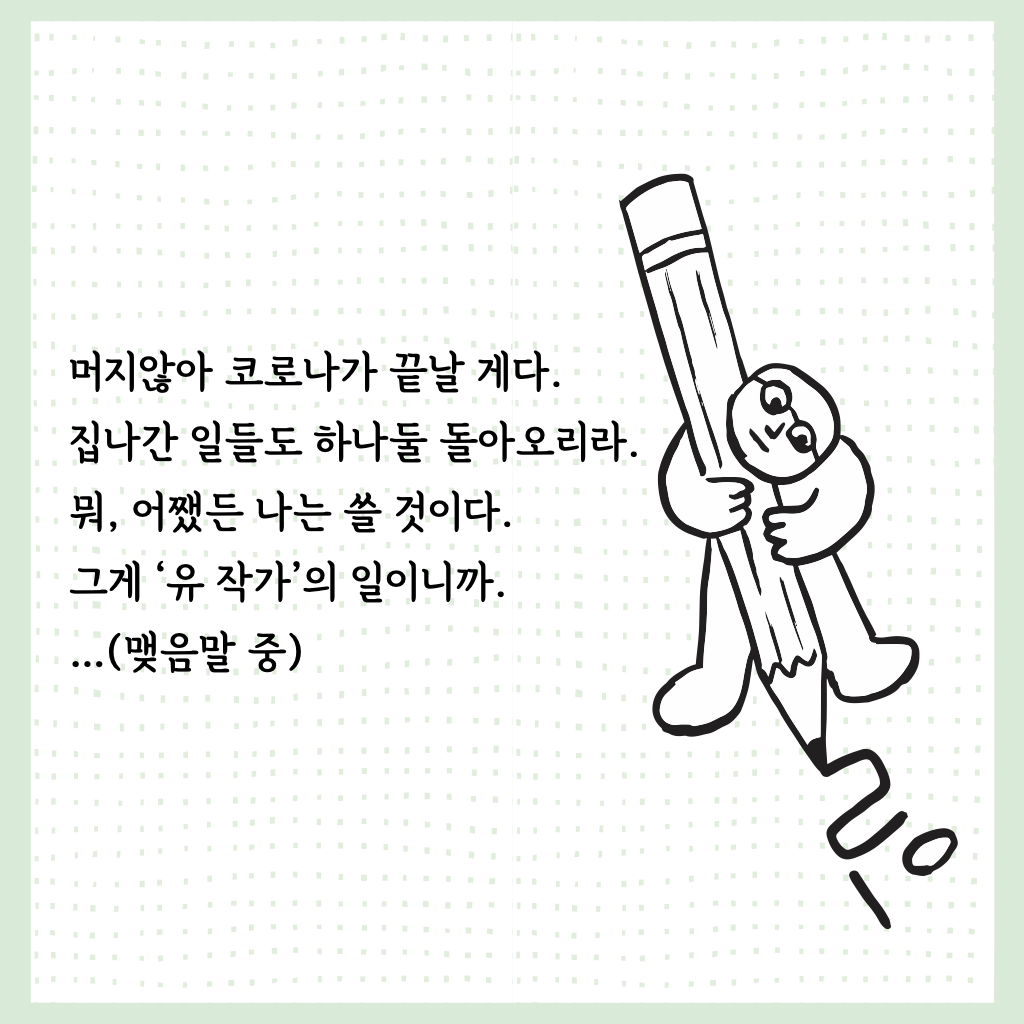 하지만 상황이 다급하니 못할 것은 없었다. 내가 비대면으로 할 수 있는 유일한 일이었으니까. 글쓰기가 큰 돈이 될 리는 만무했으나, 도리가 없었다. 무엇보다 ‘텅장’이 울고 있었으니까.